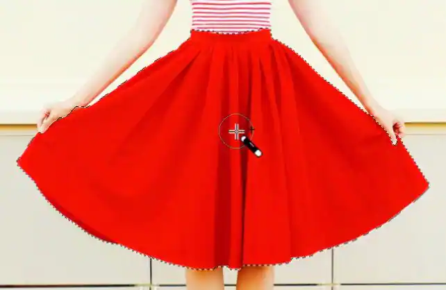 Now you’ll learn how to use a Selection tool to define an object or area in the photo before you use the Color Changer tool. This will prevent the new color from spilling over into other areas of the photo. In this example we are using the sample image Red Skirt, and we want to keep the Color Changer from affecting other red areas in the photo, such as the striped top, sunglasses and red lips.