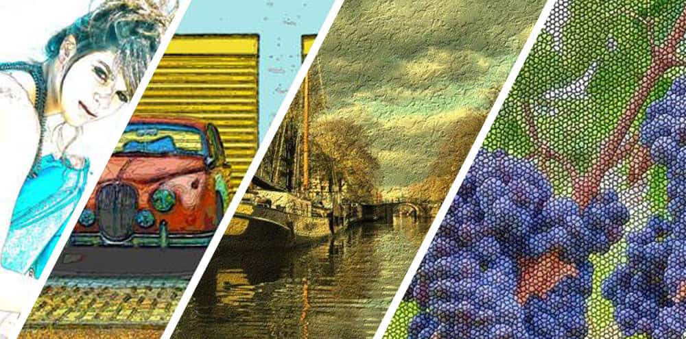 • Choose artistic effect themes like antique, comic book, photo sketch, and more