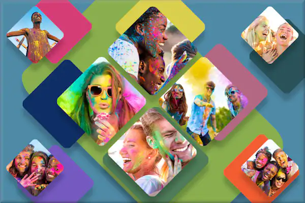 Show off your favorite photo memories with this colorful 8-photo collage template. The download includes a .pspimage file with layers and masks for PaintShop Pro users plus a transparent PNG file that can be used in other photo editing and graphics software.