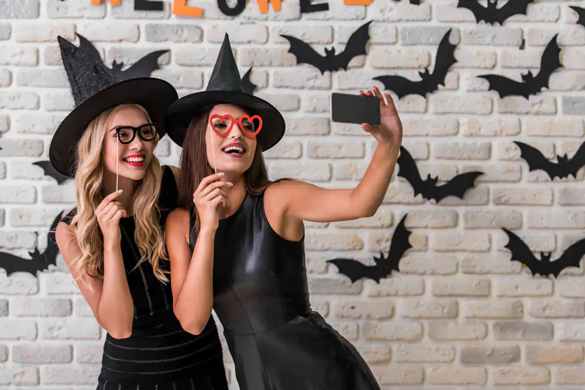 With all of the Halloween decorations around, take advantage of all of the props at your disposal! Pick up a pumpkin, grab a broom or set up a photo booth!