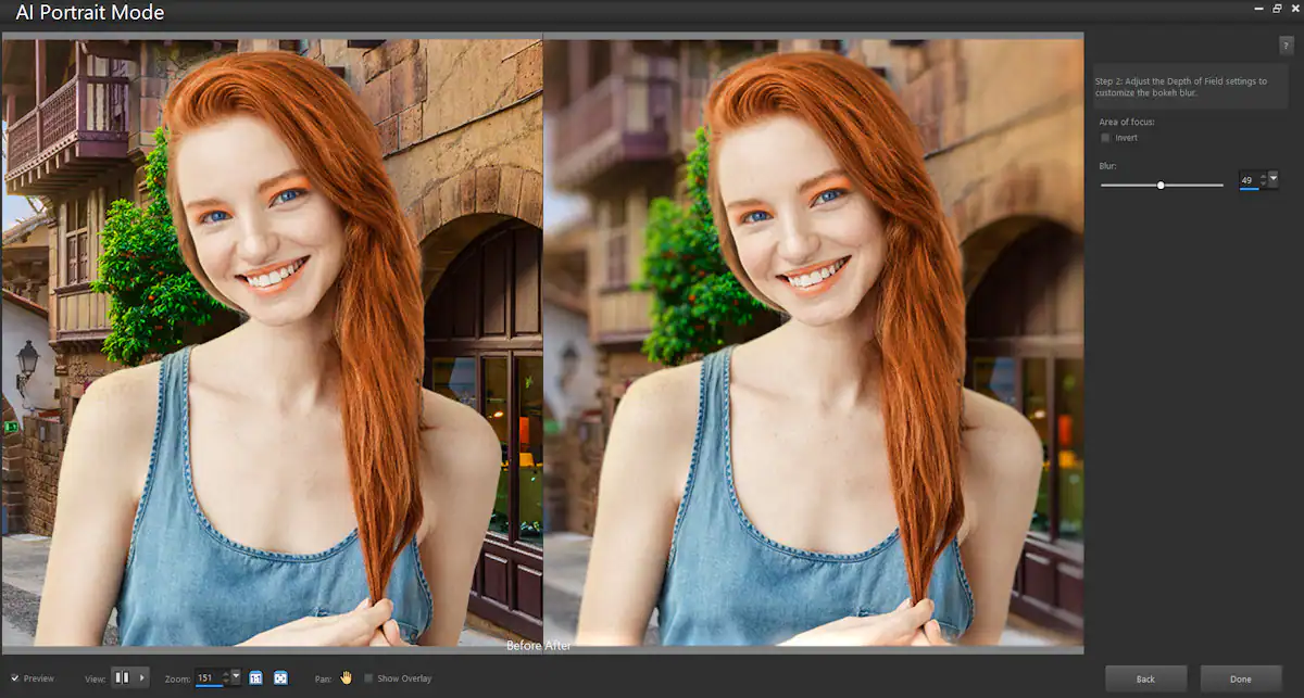 NEW AI Portrait Mode: Add a complimentary depth of field effect to the background of your image for professional looking portraits or group shots guaranteed to standout.